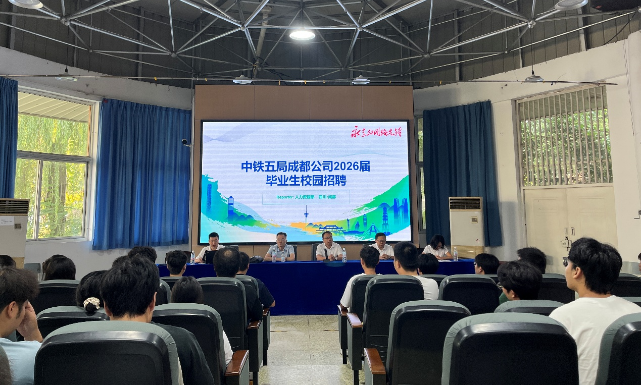 2025年9月25日、26日,中铁五局集团成都工程有限责任公司、四川诚正工程技术有限公司2026届订单班专场招聘宣讲会依次在公司西校区学术报告厅成功举办。